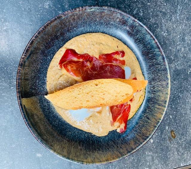 Accueil > Carte & Menus > Entrées > Œuf parfait crème de champignons de paris, chips de jambon cru