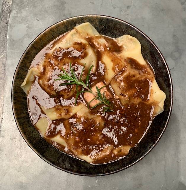> Ravioles à la joue de bœuf, foie gras, au jus de daube