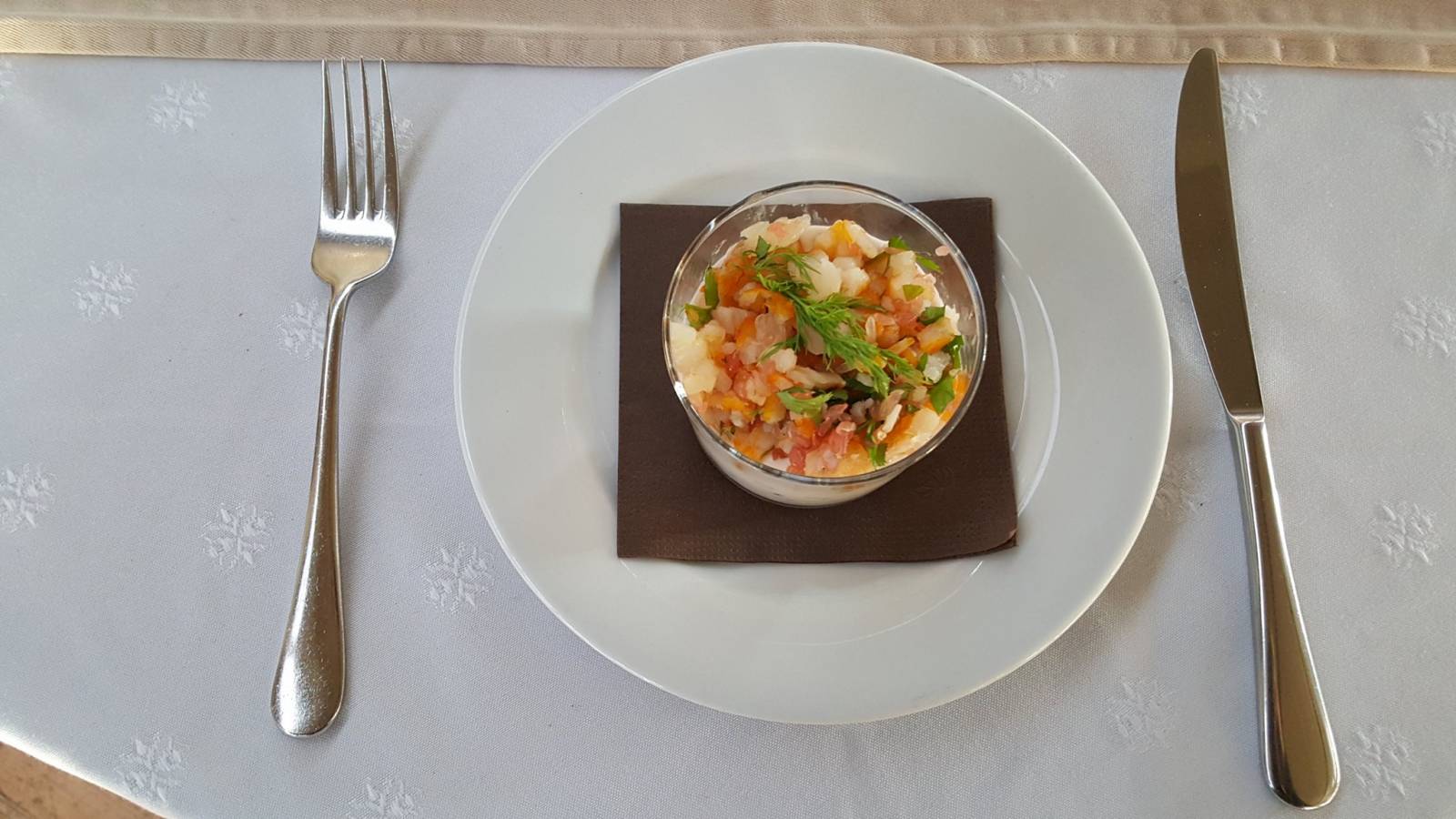 Le restaurant vous propose son Saint Jacques en carpaccio cuit à l'huile d'Aneth.